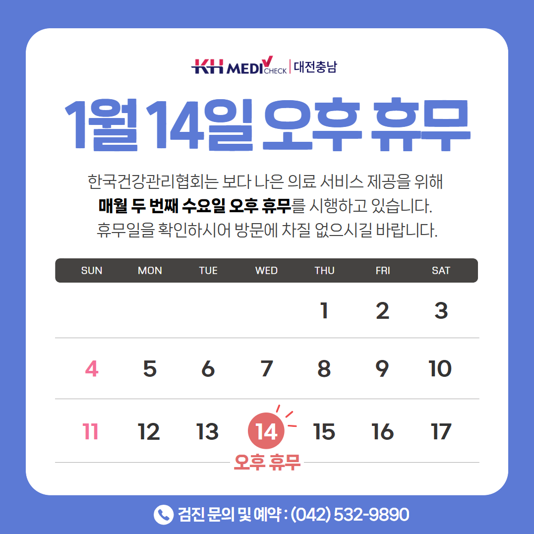 1월 14일(수) 오후휴무 안내